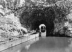 Photograph of men legging into a tunnel. The location of this scene is unknown.